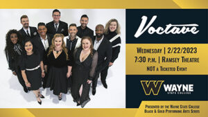 A cappella sensation Voctave marks the opening of the newly renovated Ramsey Theatre on Wednesday, February 22 at Wayne State College. The 7:30 p.m. concert is part of the WSC Black and Gold Performing Arts Series. This performance is free and open to the public. It is not a ticketed event. Repertoire for the 11-member group often includes audience favorites, such as Disney medleys, “The Impossible Dream,” and “Moon River.” For more information, contact the WSC Music Department at (402) 375-7359.