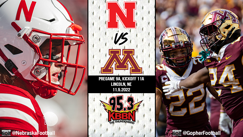 The Huskers will kick off against Minnesota at 11 a.m. (CT) at Memorial Stadium. The game will be broadcast on KBBN 95.3 FM and on kbbn.com with coverage on the Huskers Radio Network beginning at 9 a.m.
