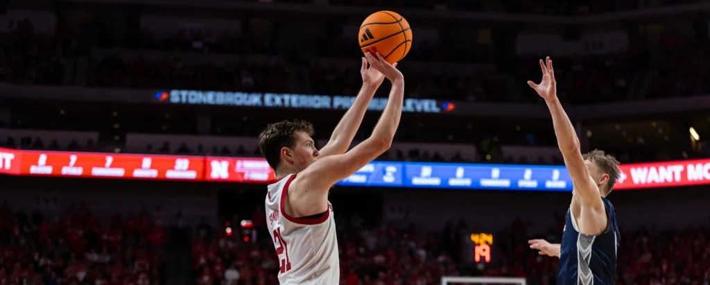 Sandfort shined in the win over No. 13 Illinois, scoring a career-high 32 points on 12-of-18 shooting while matching his career high with six 3-pointers and adding three assists. He had 26 of his points in the first half, including the Huskers’ first 15 points of the contest, as his 26-point effort was the fourth-highest half total by a power conference player this season.
