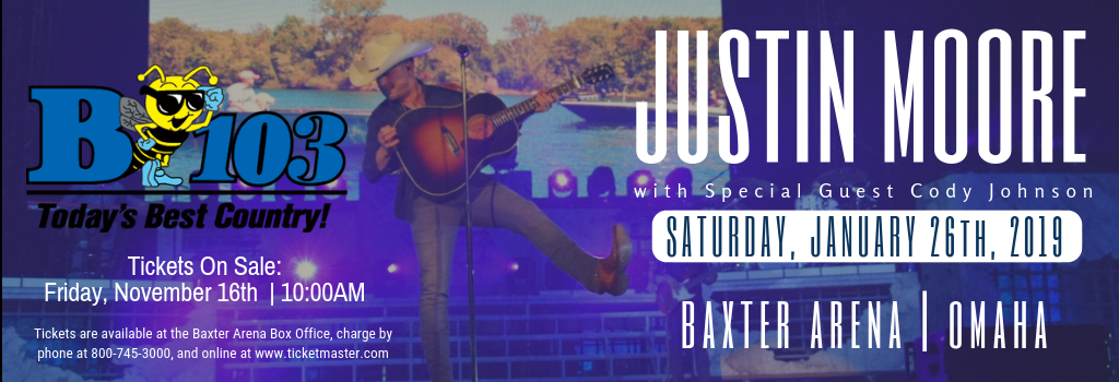 Justin Moore headline a show at Baxter Arena on Jan. 26 with special guest Cody Johnson.