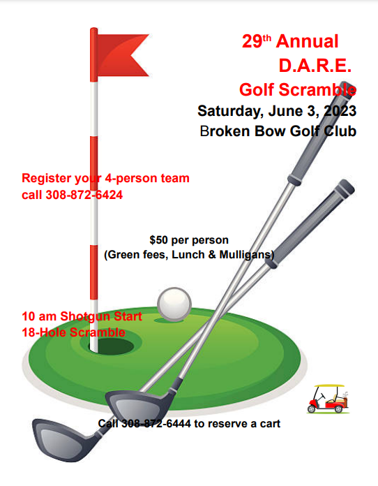 BROKEN BOW – The D.A.R.E. Golf Scramble is set for the first Saturday in June: the 3rd.