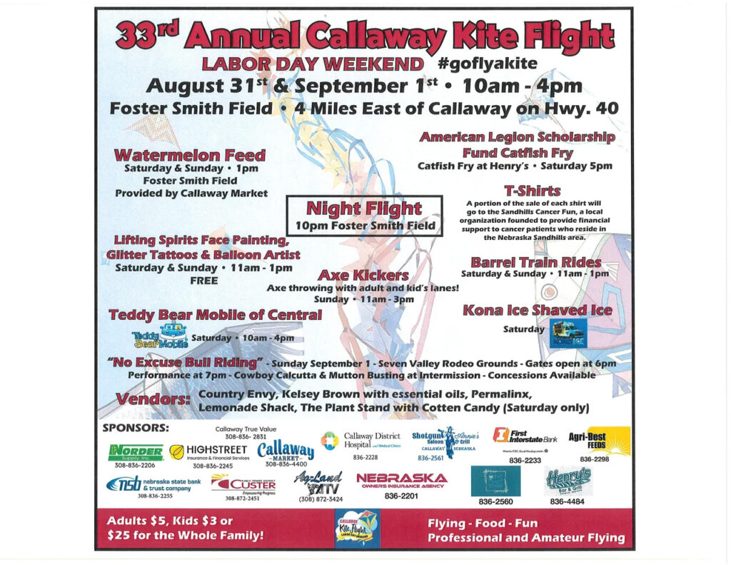 CALLAWAY – The sky at Foster Smith Field outside of Callaway will be full of kites and the ground below will have plenty of activities and food available for the annual Callaway Kite Flight on Labor Day weekend.