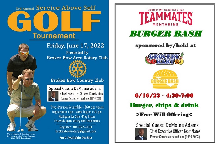 Broken Bow Area Rotary Club President Jessica McCaslin said it will be a fun, laid-back day and appreciates all of the sponsors assisting with the tournament and prizes. The annual event splits its proceeds between the Broken Bow Area Rotary Club and the TeamMates Mentoring program.