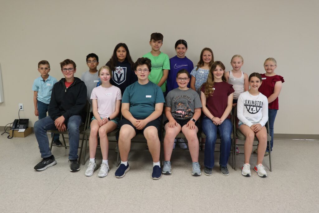 These Dawson County 4-H’ers participated in the 4-H Life Challenge Contest and 4-H Horticulture Identification and Judging Contest at the Extension Office: (front row, left to right) Rieker Spradlin, Cozad; Jaden Hunke, Lexington; Wesley Thompson, Lexington; Mollie Spradlin, Cozad; Paige Walahoski, Overton; Millie Pepplitsch, Lexington; (back row, left to right) Barrett Hunke, Lexington; Josue Casanova, Lexington; Melissa Montano, Kearney; Terrence Bliven, Lexington; Maya Soria, Kearney; Gabby Caraway, Lexington; Michelle McArdle, Cozad; and Megan Walahoski, Overton. (Not pictured: Bristol McConville, Lexington) Photo credit: Dawson County Extension