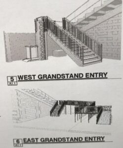 A proposal from Kearney’s Miller & Associates for the engineering of the project was approved in May. Together with Architectural Design Associates out of Lincoln, the engineering firms submitted a preliminary design which included a wheelchair lift on the west side, a ramp on the east side, ADA seating areas, and new ADA restrooms on the south side of the grandstands.
