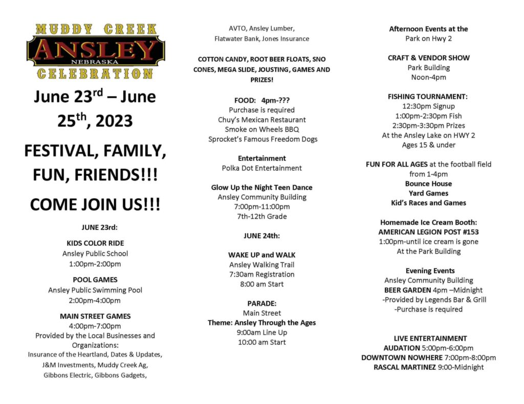 From Friday, June 23 to Sunday, June 25, Ansley invites those from Custer County and beyond to experience just what makes Ansley special.