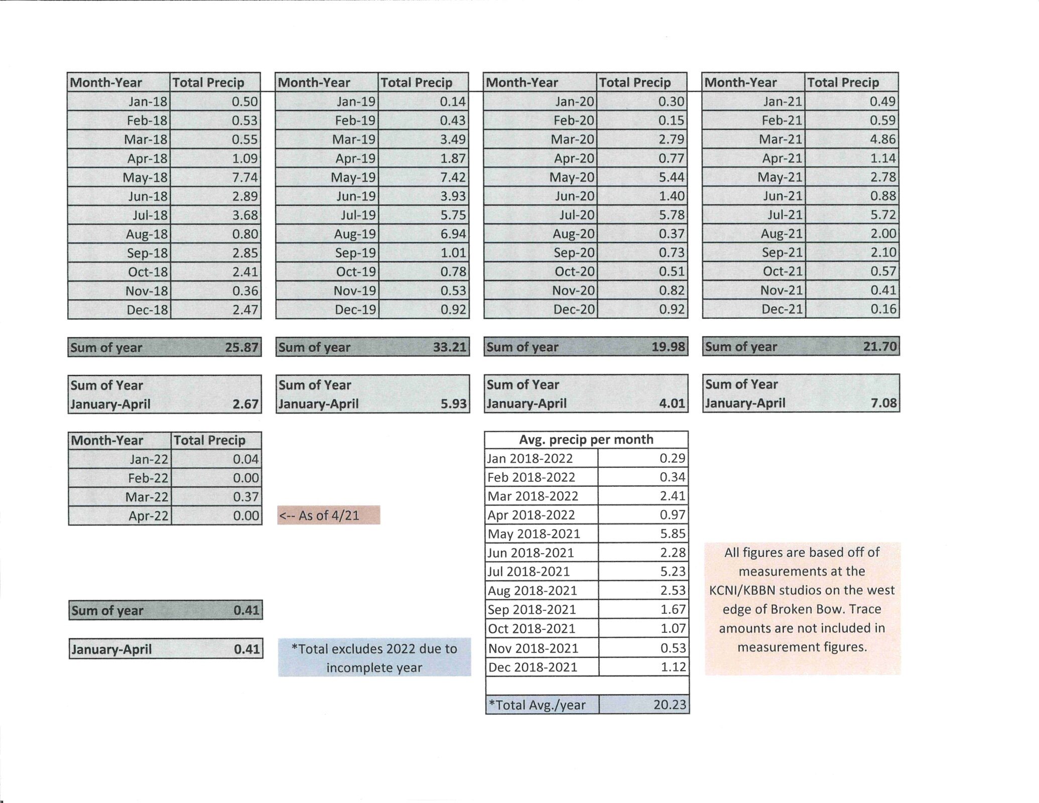 If we compare the last eight months from September 2021 through April 2022, the area has received 3.65” of precipitation which is approximately 6.79” behind the average received at this same time since 2018.