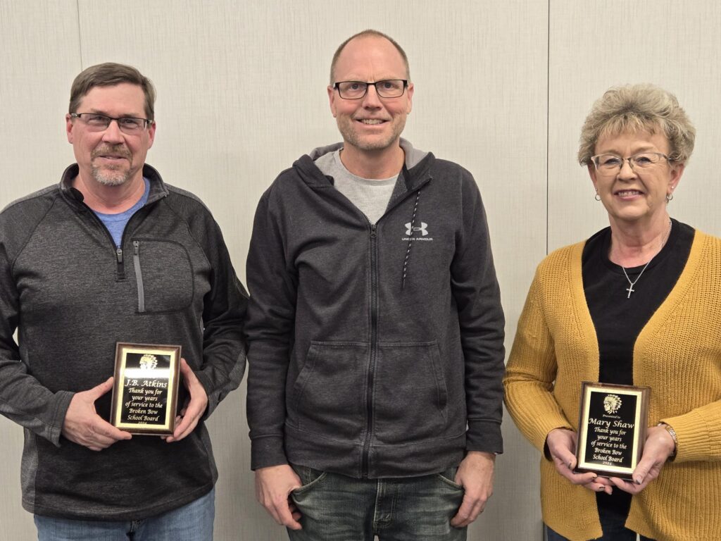 JB Atkins and Mary Shaw attended their last School Board meeting as Broken Bow Board of Education members on December 16. Tom Osmond, the Board’s president, presented them with plaques of appreciation for their eight years of service. Osmond personally thanked Mary and JB for their dedication while they served. Osmond smiled and said he may still call them for advice if needed.