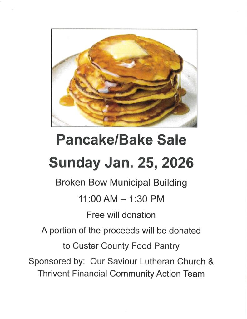 Our Saviour Lutheran Church of Broken Bow and Thrivent Community Action Team are hosting their annual Pancake/bake sale on Sunday, January 25.