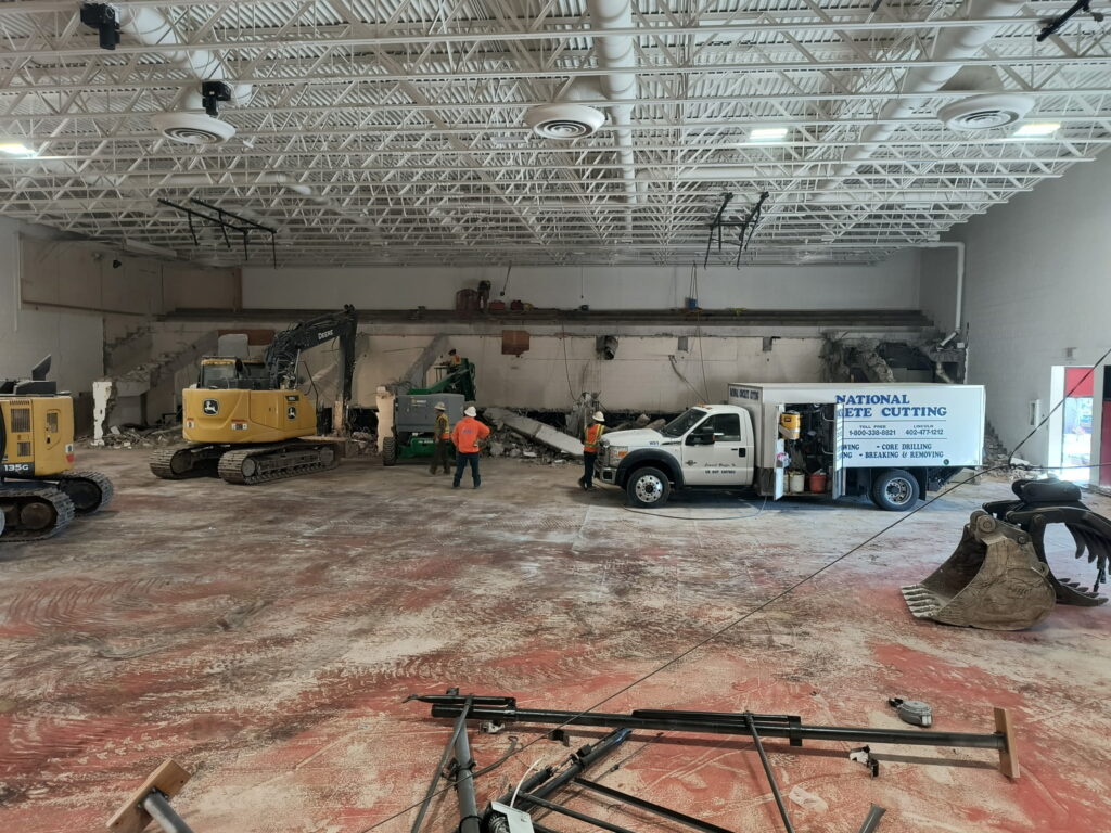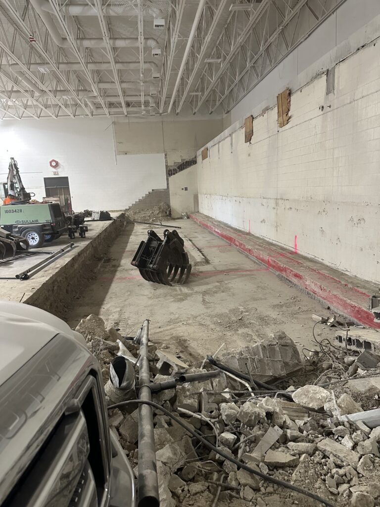 “First off, the progress is coming along real smooth. They’re on schedule and it’s really unique in there. For all the folks that are very familiar with the “Bow Dome” the concrete is gone. The stage on the visitor’s side, the walls that were kind of barriers to the visiting side, and the home bleachers, the concrete is all out of there so it’s a clean slate, a clean rectangle. Now they will start coming in with the remodel if you will with paint and bleachers, new court, new wood, so the progress is on pace.”