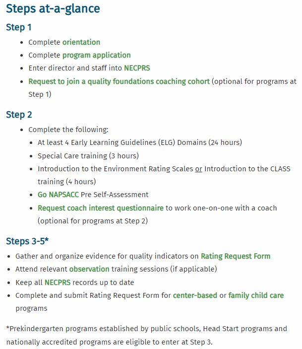 The Step Up to Quality program has five levels, or steps. Love to Learn Playschool owner Heather Schmidt explained to KCNI/KBBN that each level has different requirements including orientations, trainings, self-assessments, coaching, and observations. She herself started orientation in 2016.