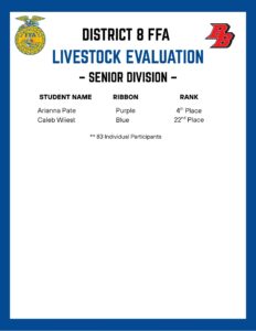 The Broken Bow FFA Chapter Livestock Judging Team met with great success when they traveled to Ord on Wednesday, October 8 for the Nebraska District 8 Livestock Judging competition.