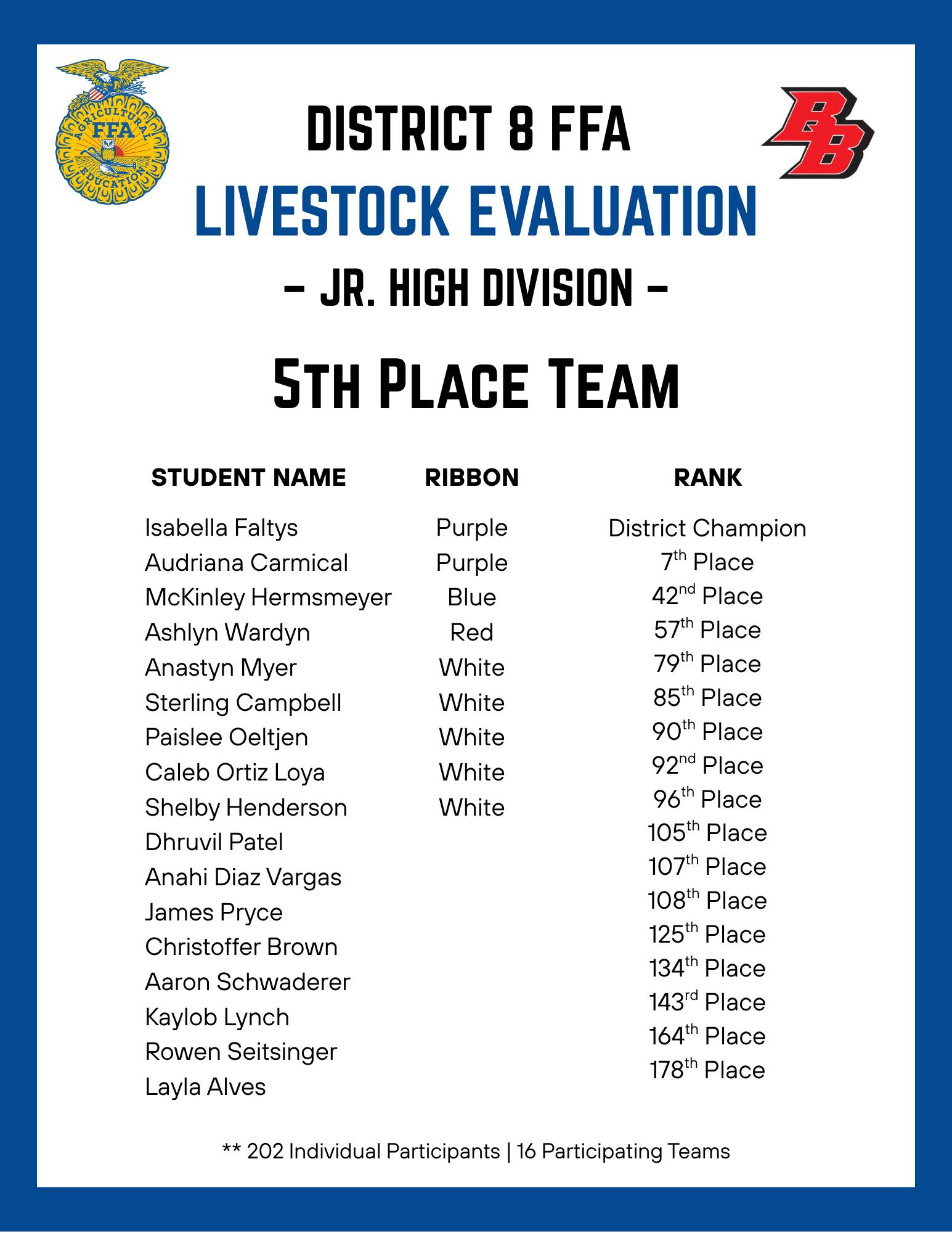 The Broken Bow FFA Chapter Livestock Judging Team met with great success when they traveled to Ord on Wednesday, October 8 for the Nebraska District 8 Livestock Judging competition.