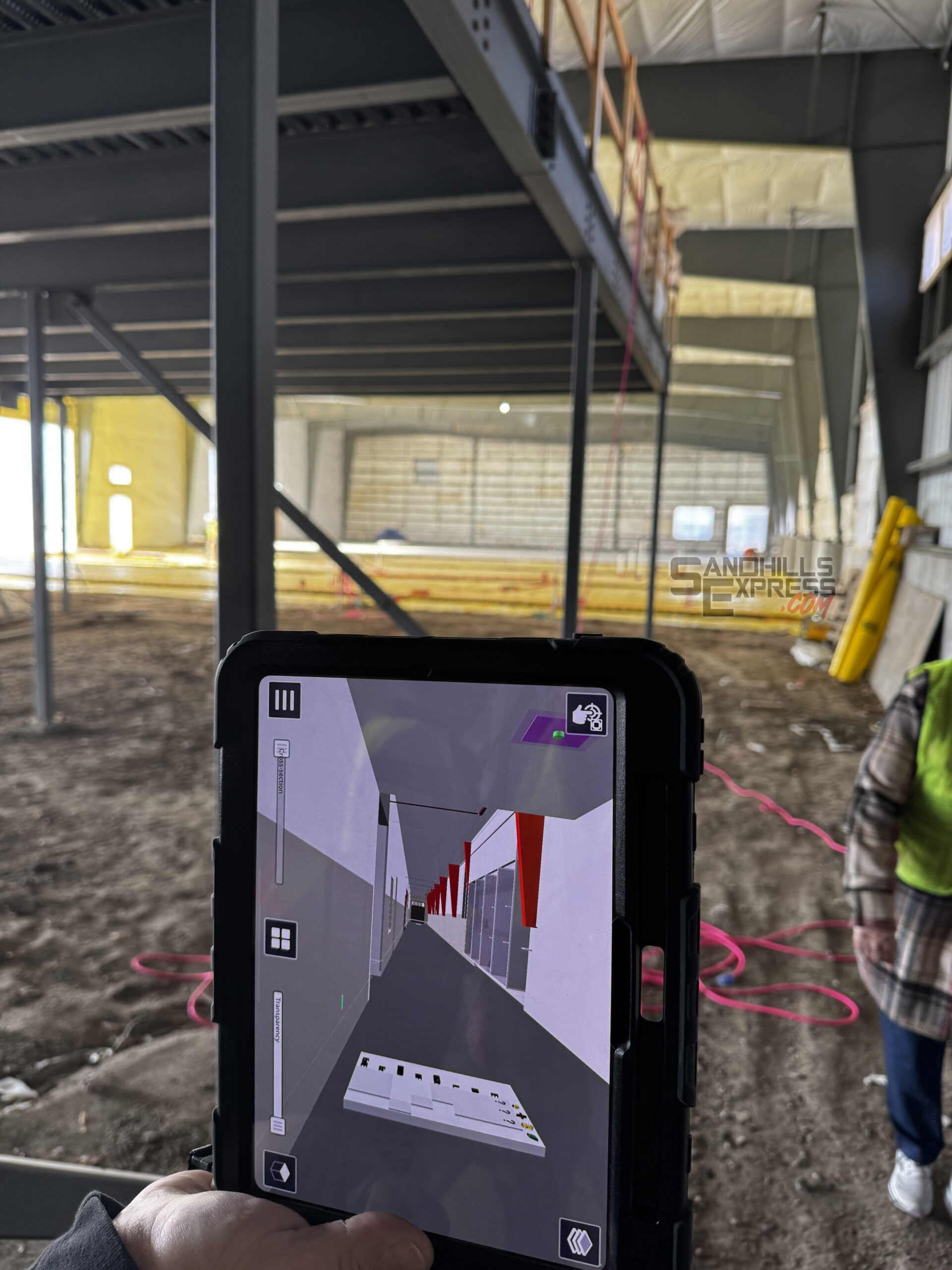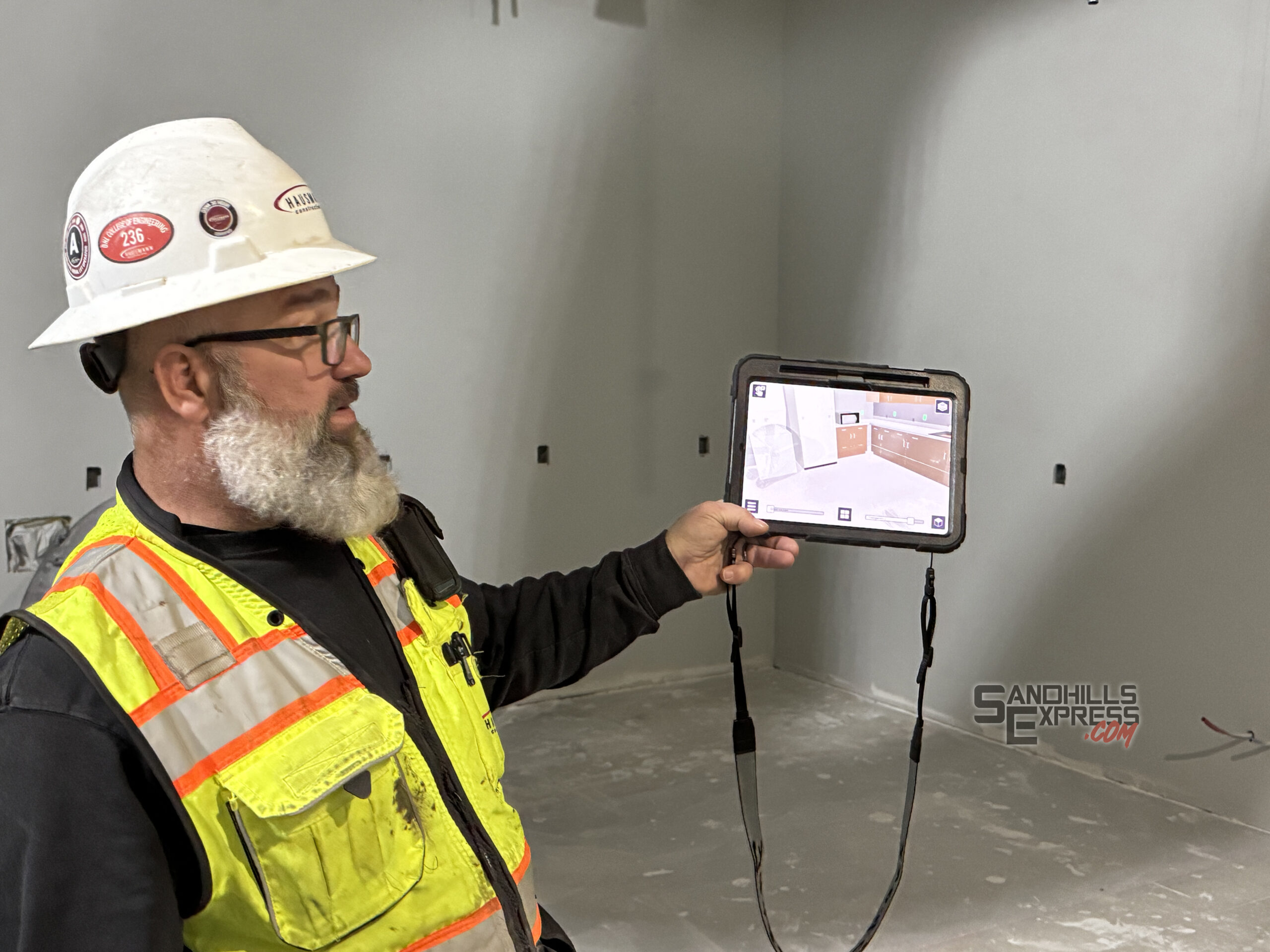 With the assistance of augmented reality, those on the tour were able to stand inside incomplete rooms and get a virtual preview of what it would look like completed through the lens of a tablet camera.