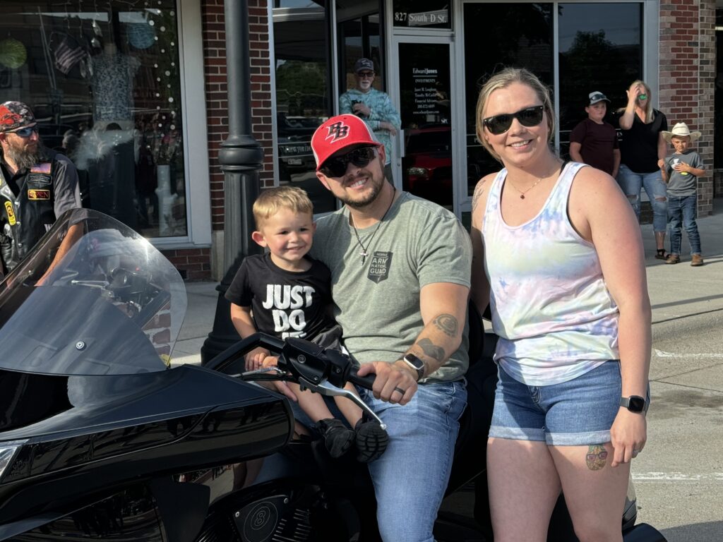 BROKEN BOW, NE – A small crowd gathered on the north side of the Broken Bow square Saturday evening to see Chris Shelby receive the gift of a motorcycle and camaraderie. Wheels 4 Warriors USA (W4W) was on site to make Shelby the 46th veteran their organization has given a set of keys to since 2016.