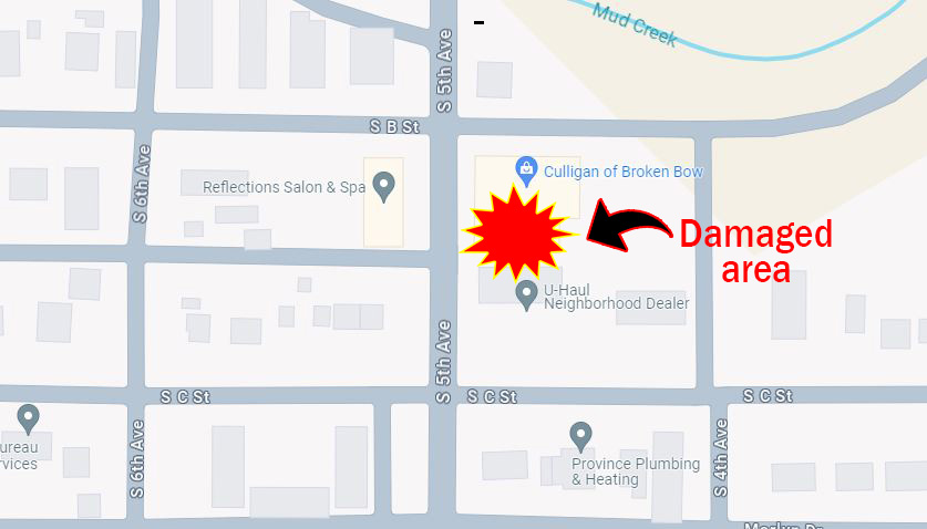 Exact buildings damaged by the storm could not be confirmed, but the three neighboring structures house Culligan of Broken Bow, JolRan Dance Academy, and U-Haul/Dave Hendrickson Construction.