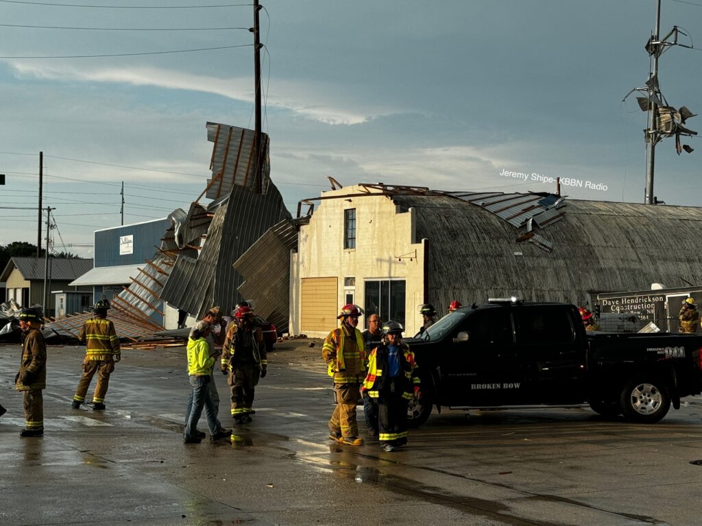 KCNI/KBBN observed fire and rescue crews from both Broken Bow and Merna on scene. A perimeter was set up quickly while electric and gas crews joined damage assessment and cleanup as the sun set Tuesday evening.