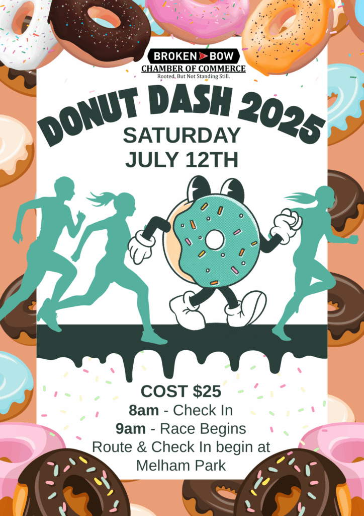 The Broken Bow Chamber of Commerce is bringing back their popular Donut Dash for 2025, with a check-in and route beginning at Melham Park at 8 AM.
