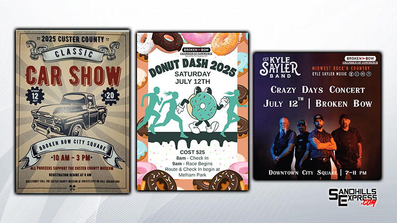 Morning events include the Donut Dash and the Custer County Classic Car Show, taking place at Melham Park and the Broken Bow square respectively.