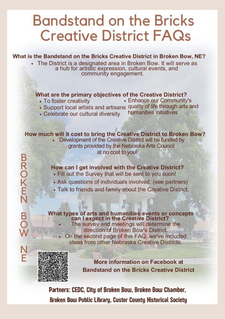 In addition to the survey, the public is invited to get involved by asking questions of the partners of the event (the CEDC, The City, Broken Bow Chamber, Broken Bow Public Library, and the Custer County Historical Society), and by talking to friends and family about the creative district.