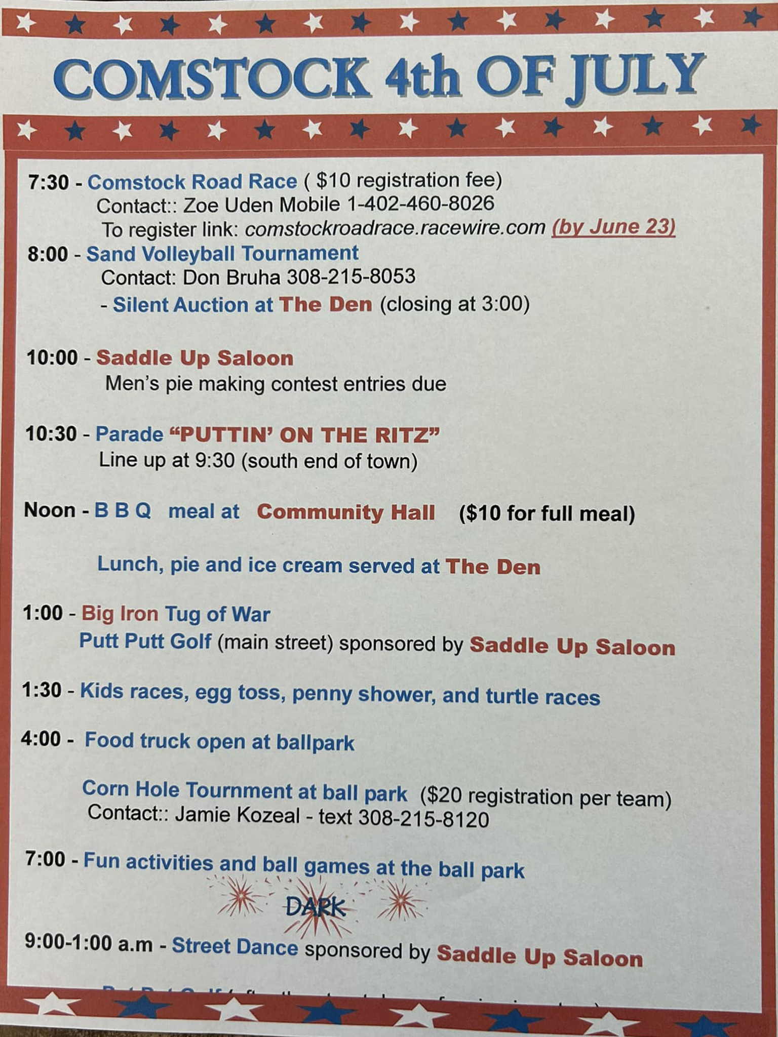 COMSTOCK- Attendees from near and far are invited to Comstock for their annual 4th of July celebration, taking place from the early morning hours into the night.