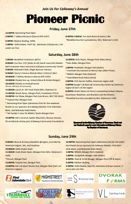 CALLAWAY- Callaway’s annual Pioneer Picnic will take place this weekend, June 27-29.