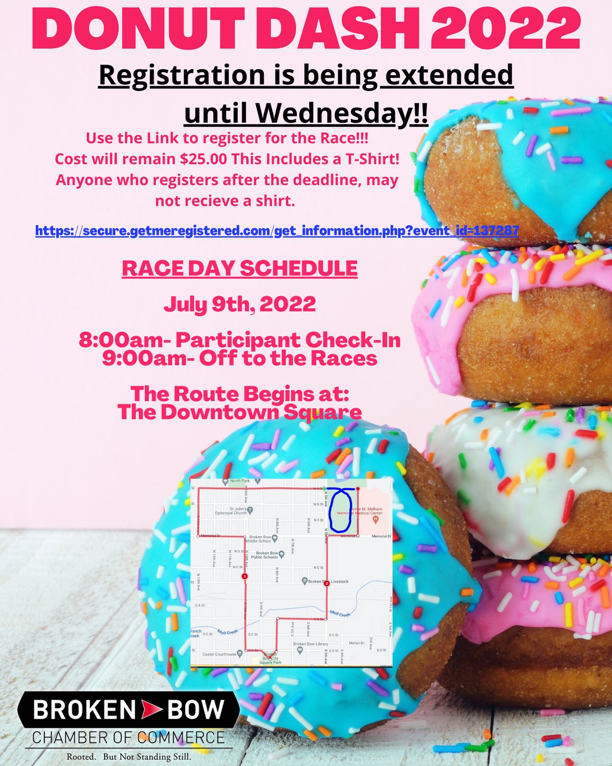 BROKEN BOW – The Broken Bow Chamber of Commerce is still seeking volunteers for the annual Donut Dash 5K on Saturday, July 9.