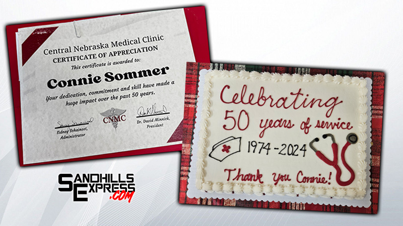 BROKEN BOW, NE – Staff past and present came together Thursday to celebrate Connie Sommer and her 50 years as a part of the staff at Central Nebraska Medical Clinic in Broken Bow.