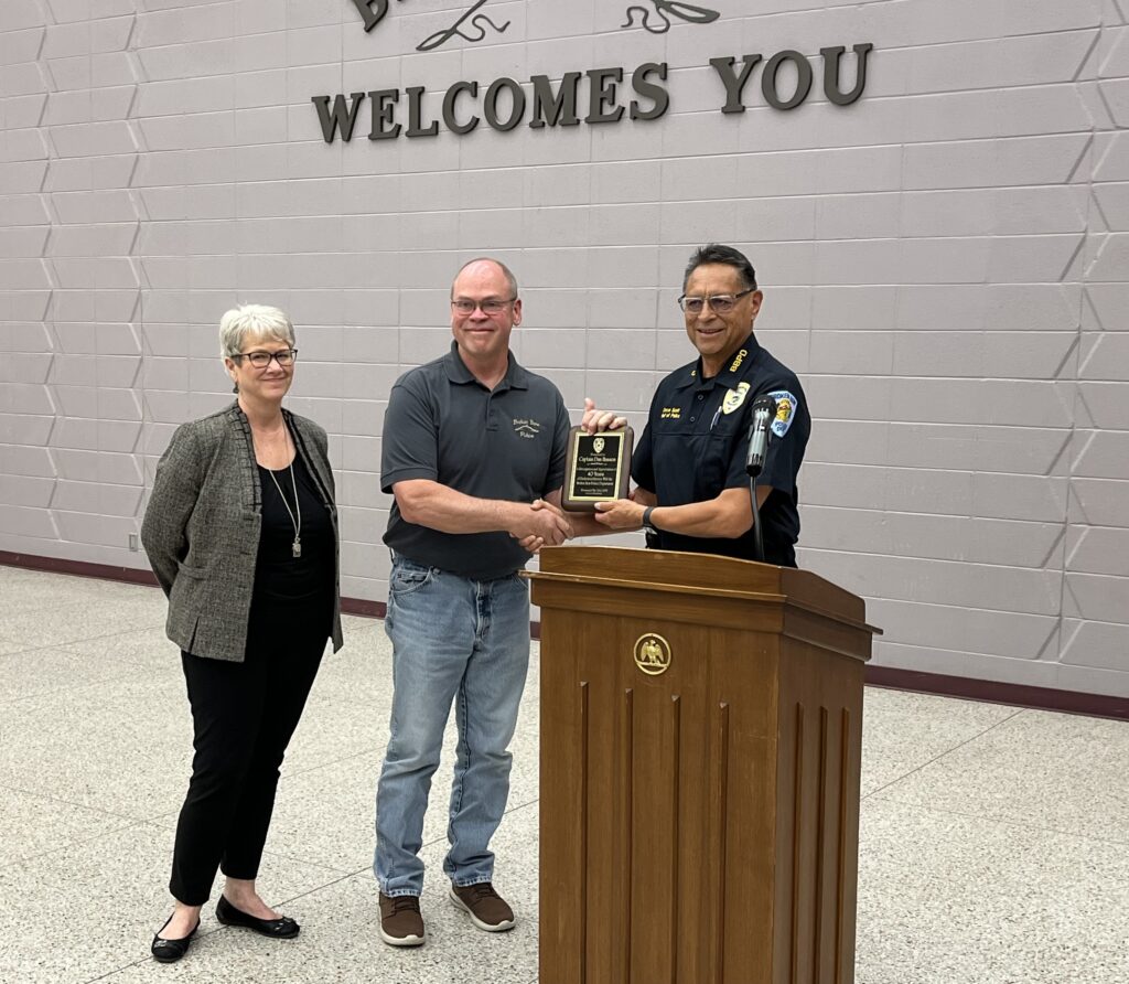 Captain Dan Hanson’s tour of duty as Broken Bow’s Police Captain will come to an end on June 5; Hanson is retiring and was presented with a plaque by the city council for his 40 years of service.