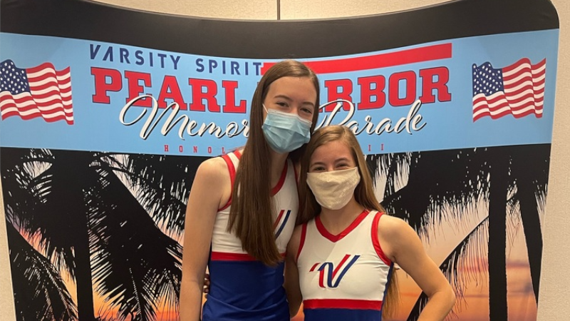 Alyssa Kolbo and Katie Wilson from Cozad High School are two of more than 600 high school cheerleaders and dancers from across the country that represented the camp brands of Varsity Spirit in the Varsity Spirit Pearl Harbor Memorial Parade in Honolulu, HI from December 4-8, 2021.