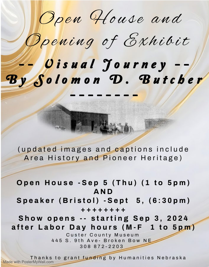 The Custer County Historical Society (CCHS) is constantly working to expand the knowledge of Custer County’s past and then tell the public our area’s stories. Thanks to the photography work of legendary central Nebraska photographer Solomon D. Butcher, the picture of Custer County’s history can be expanded even more this week.