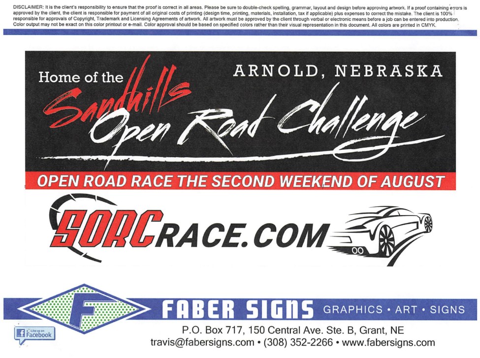 Becky Dailey represented the Sandhills Open Road Challenge (SORC) during an agenda item at Tuesday’s meeting. Ahead of their 25th year of road racing, SORC is seeking the placement of a sign on private property two miles west of Arnold with the use of Custer County Tourism grant money. The 16′ by 8′ sign will read “Home of the Sandhills Open Road Challenge, Arnold, NE, second week of August”.
