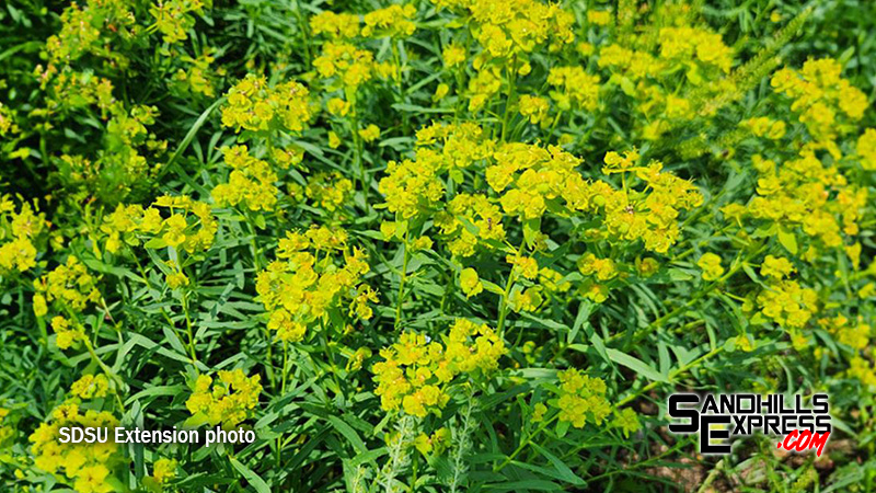 “Well as far as the musk thistles go, you know earlier on I don’t think it was even in people’s minds because you weren’t really seeing them and they didn’t seem like they were out there and then once we got the rain and then the heat and the sun they went from like rosettes to seaman like the next day they had blooms on them and it was almost too late to take care of them I think they kind of snuck up on people this year, At this point, the musk thistles are probably pretty much, for the most part, done growing but I mean if you haven’t gotten to them you still need to either pick the heads off of them or chop them down or shred them just to knock them down and try to keep the seeds from spreading any more than they can. As far as the leafy spurge goes, I think there’s leafy spurge out there at all stages right now. There’s that leafy spurge out there that well, it’s already matured and seeded and If that’s the case I’d probably wait until fall to spray that at this point, but then there’s also leafy spurge that was maybe sprayed last fall and so it made it come up later this year or not as fast. So, there’s leafy spurge out there that is just starting to flower and hasn’t seeded yet or there’s just sprigs coming up and bolting and if that’s the case then I would still go ahead and spray that right now.”