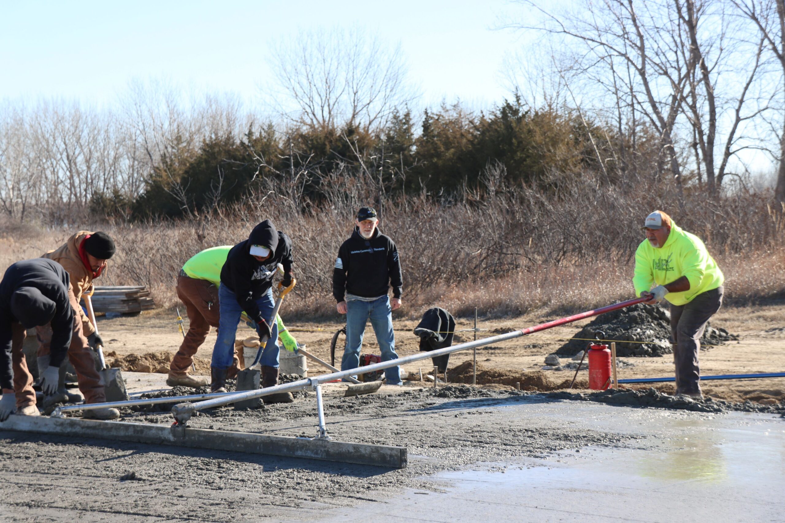 The construction project to pave the access road through Davis Creek Recreation Area near North Loup is proceeding at a rapid pace, due in part to recent mild weather.