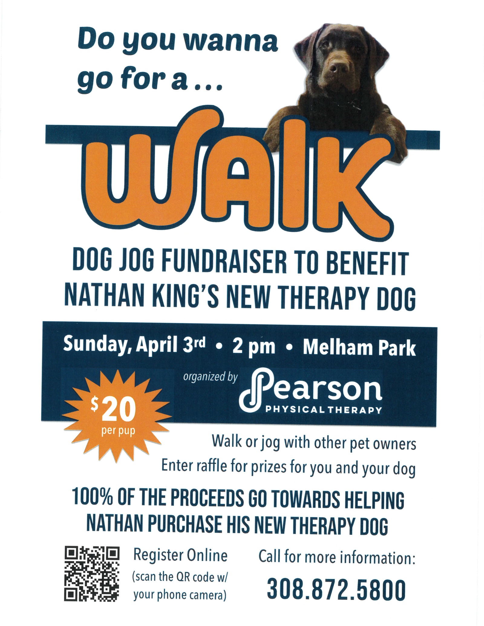 BROKEN BOW—Bring your very own ‘man’s best friend’ for a special dog walk/jog fundraiser on Sunday, April 3 at 2 p.m. at Melham Park in Broken Bow. The cost of the event is $20 per dog and 100% of the proceeds go toward helping Nathan King purchase his new therapy dog.