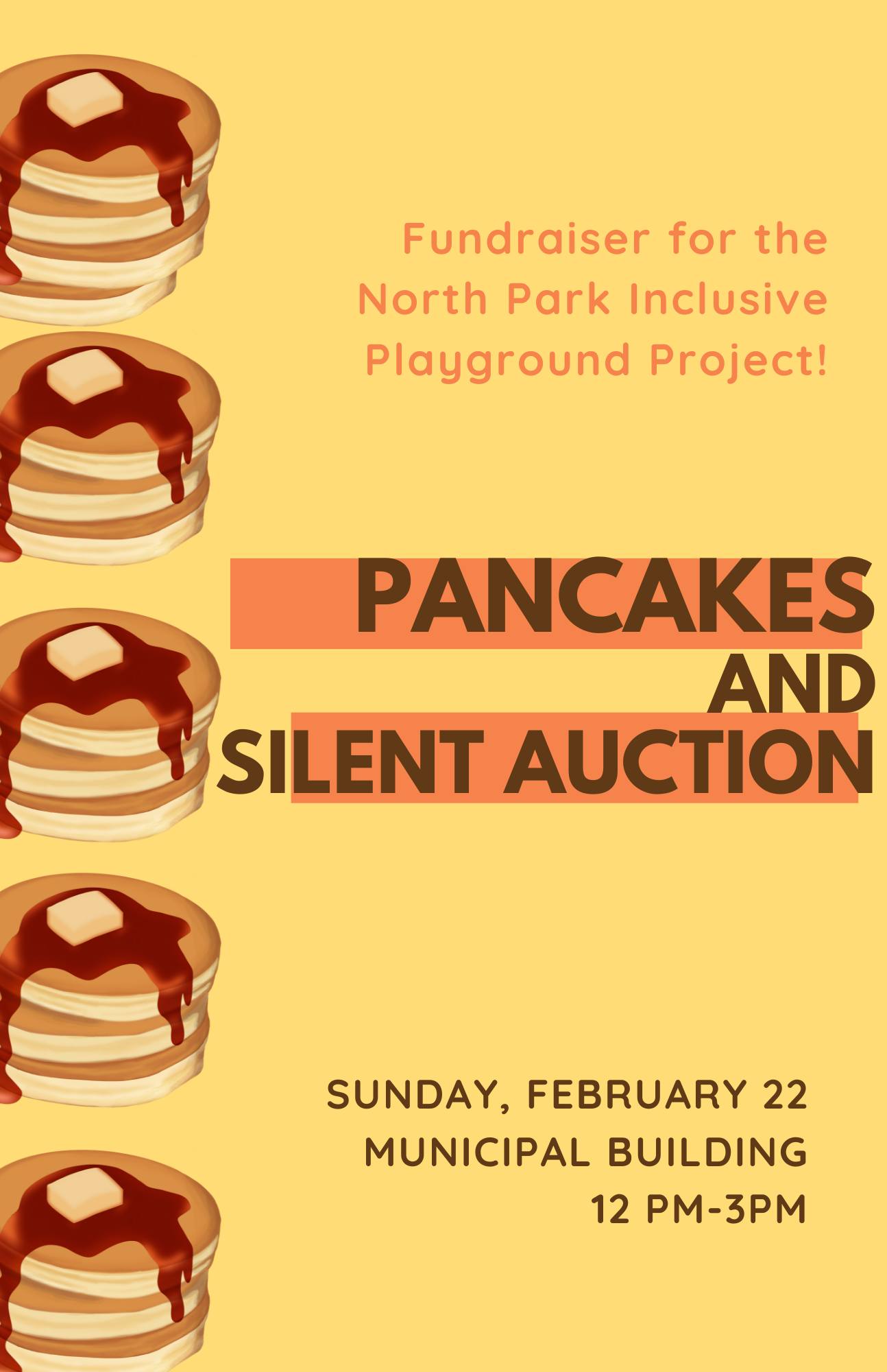On Sunday, February 22, the North Park Inclusive Playground Project will host a Pancakes and Silent Auction event at the Broken Bow Municipal Building. In collaboration with Broken Bow Area Rotary and North Park Elementary PTA, pancakes will be served with scrambled eggs, ham, and drinks from 12:00 Noon until 3:00 PM. A free-will donation will be accepted supporting the Project’s mission to build an inviting space for kids of all abilities to play together at North Park Elementary.