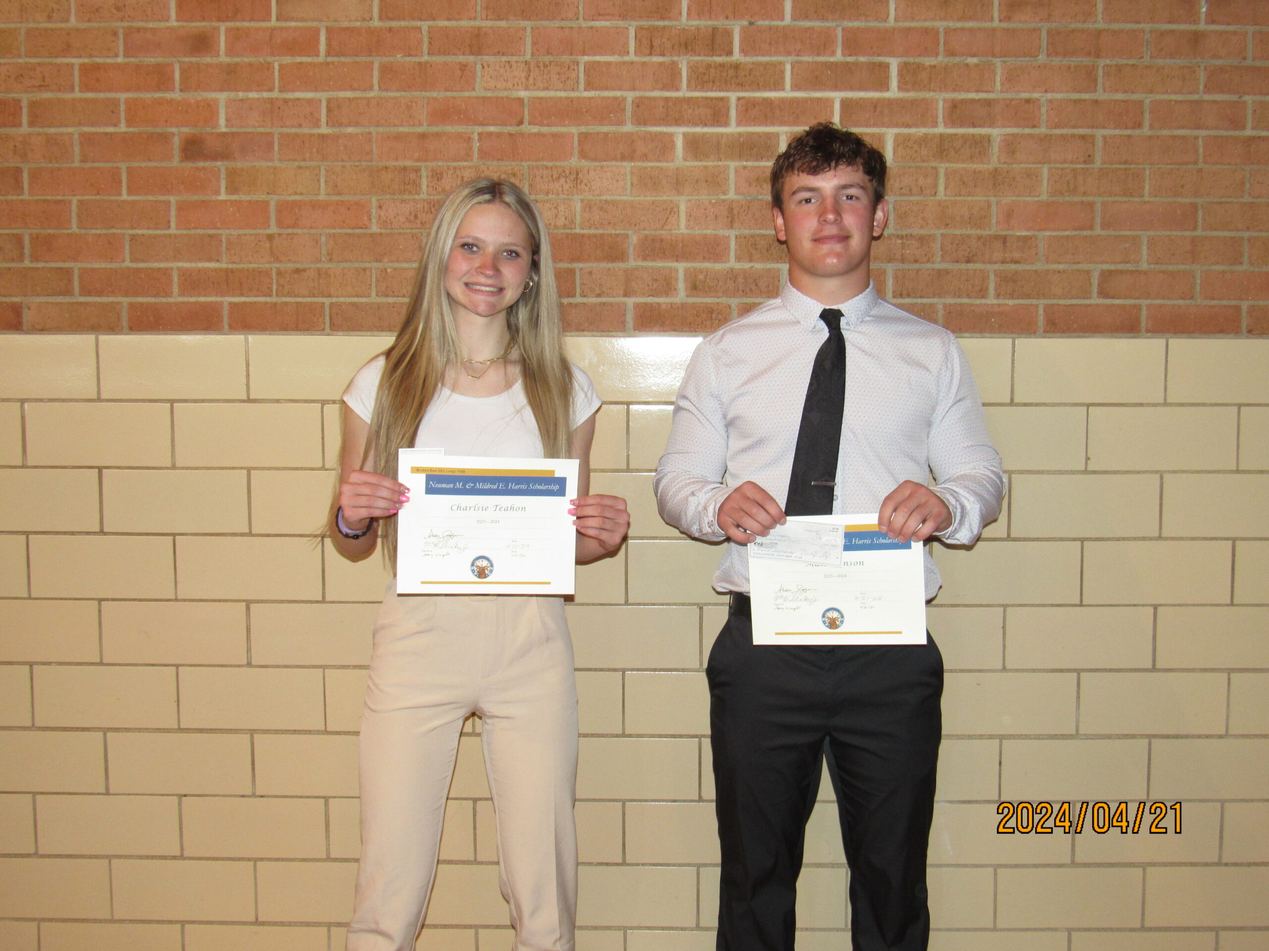 Neuman and Mildred E. Harris scholarships were received by Charlsie Teahon from Sandhills and Max Denson from Broken Bow.