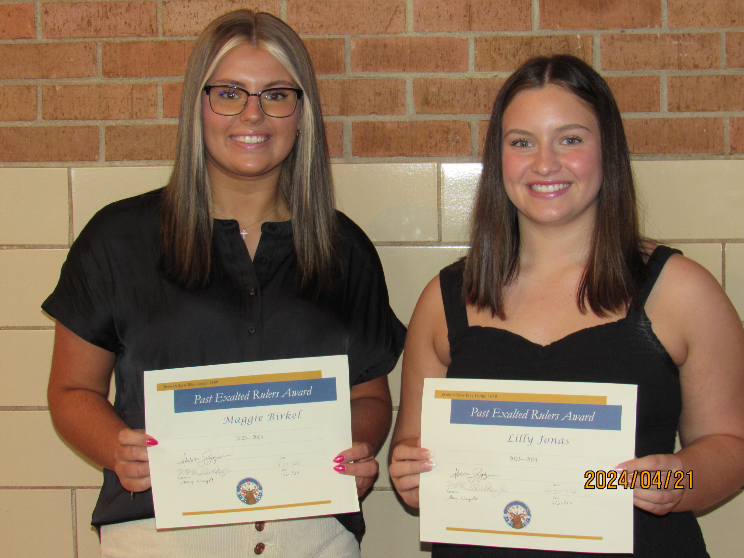 Receiving the Past Exalted Ruler scholarships were Maggie Birkel from Callaway and Lily Jonas from Broken Bow.