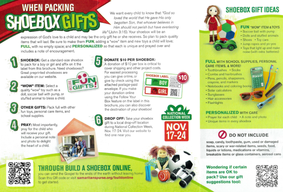 National collection week for Operation Christmas Child is Monday, November 17 – November 24.