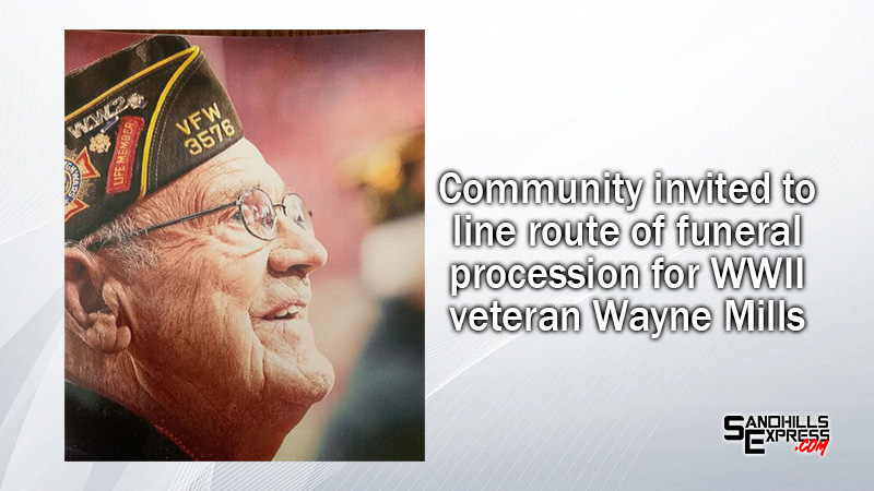 BROKEN BOW, Neb. – The Broken Bow Veterans of Foreign Wars and American Legion are inviting the public to participate in one last salute to WWII Veteran and Purple Heart recipient Wayne Mills on Monday along the route of his funeral procession.
