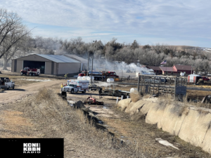 KCNI/KBBN witnessed a metal shed building that had smoke coming from it but no visible flames. Broken Bow Fire Department was shooting water at the metal shed building.
