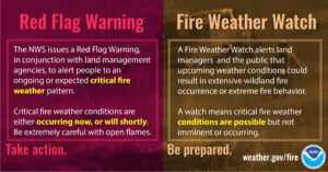 Relative humidity values dropping down to 10% and strong southwest winds gusting up to 35 mph will lead to critical fire weather conditions. Any fires that may develop have a high probability for rapid spread and may be difficult to control.