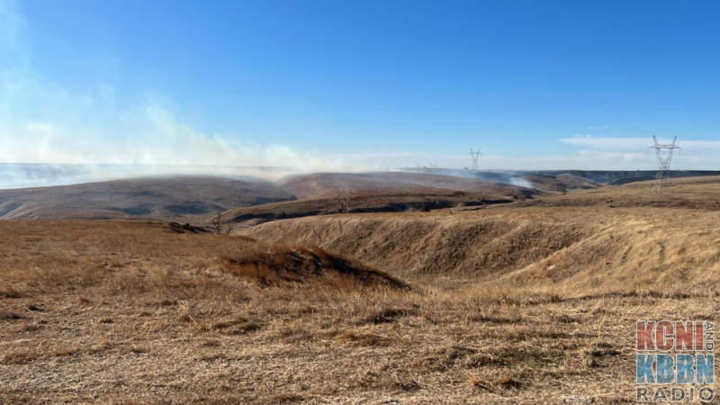 KCNI/KBBN was on the scene where multiple departments could be seen fighting against the wind to stop the flames from spreading through the pasture. Just before 3 PM the leading edge of the fire dropped into a small canyon and was extinguished by fire crews essentially stopping the spread of the fire to the east. Fire trucks continued to put out hot spots throughout the area and were still on the scene around 3:30 PM.