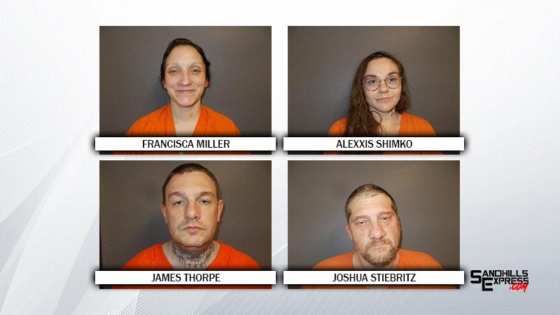 Joshua Stiebritz, age 45, was charged with two counts–possession of methamphetamine, and possession of lisdexamfetamine, both Class IV felonies. James Thorpe, age 35, was charged with possession of methamphetamine, a Class IV felony, and being a habitual criminal. Francisca Miller, age 38, faces charges of possession of methamphetamine and possession of psilocybin, both Class IV felonies. Alexxis R. Shimko, age 28, was charged with four counts—possession of methamphetamine, possession of lisdexamfetamine, possession of hydromorphone, and possession of lorazepam, all Class IV felonies. Judge Tami Schendt set bond for each defendant at $5,000 with 10% privilege. All defendants requested and were granted court appointed attorneys. Preliminary hearings for each were set for December 9th at 2:30 p.m.