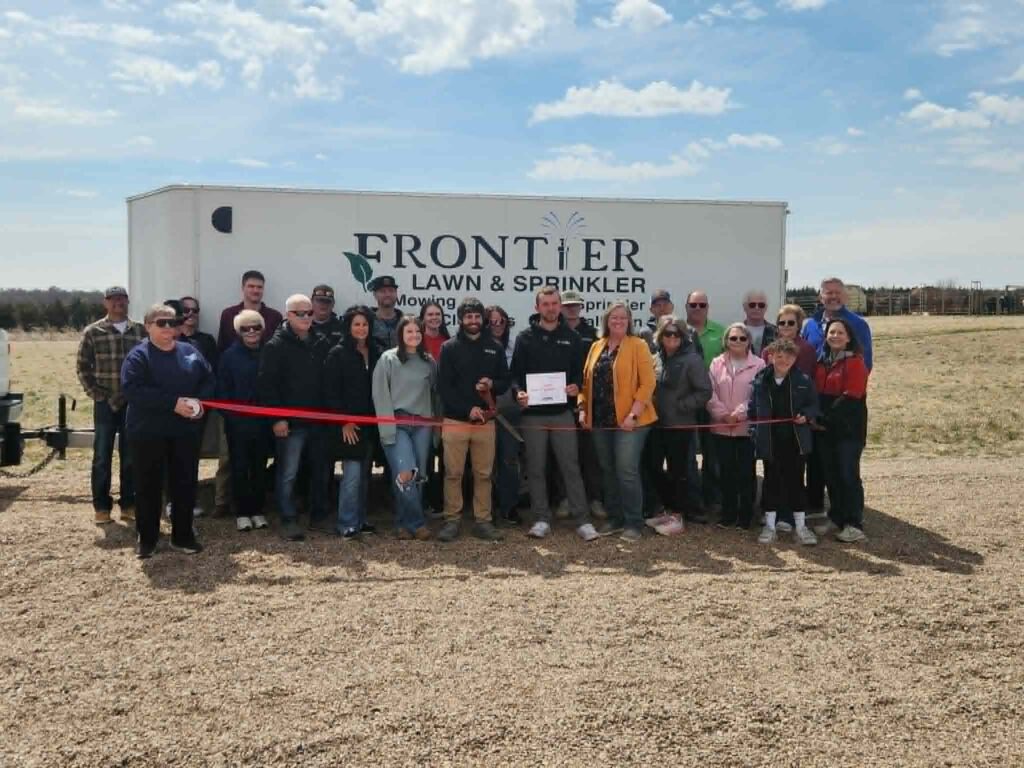 Frontier Lawn & Sprinkler LLC cuts ribbon with Broken Bow Chamber of Commerce