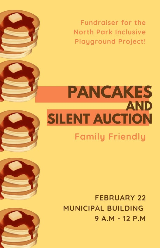 During the pancake feed, a family friendly silent auction will be held. Money raised from the feed and auction will go towards the North Park inclusive playground project. The project’s goal is to provide an inviting play space for all kids.