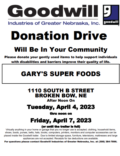 BROKEN BOW – The Goodwill trailer will once again be returning to Broken Bow for its first visit of spring.