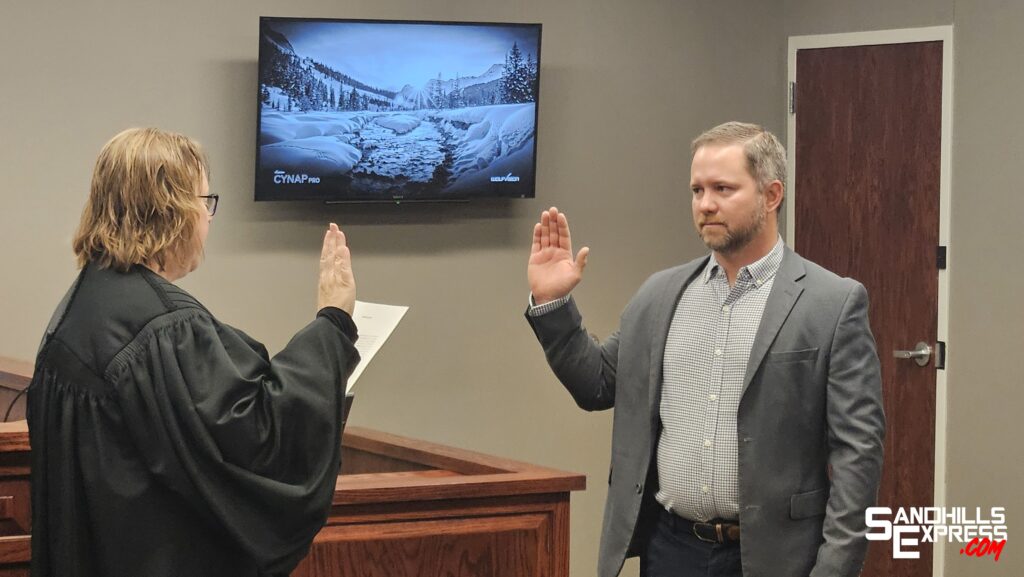 Custer County Judge Tami Schendt administered the oath of office to Broken Bow’s Clay Govier on Monday morning, December 15, making Govier the new Custer County Supervisor for the District 3 area.