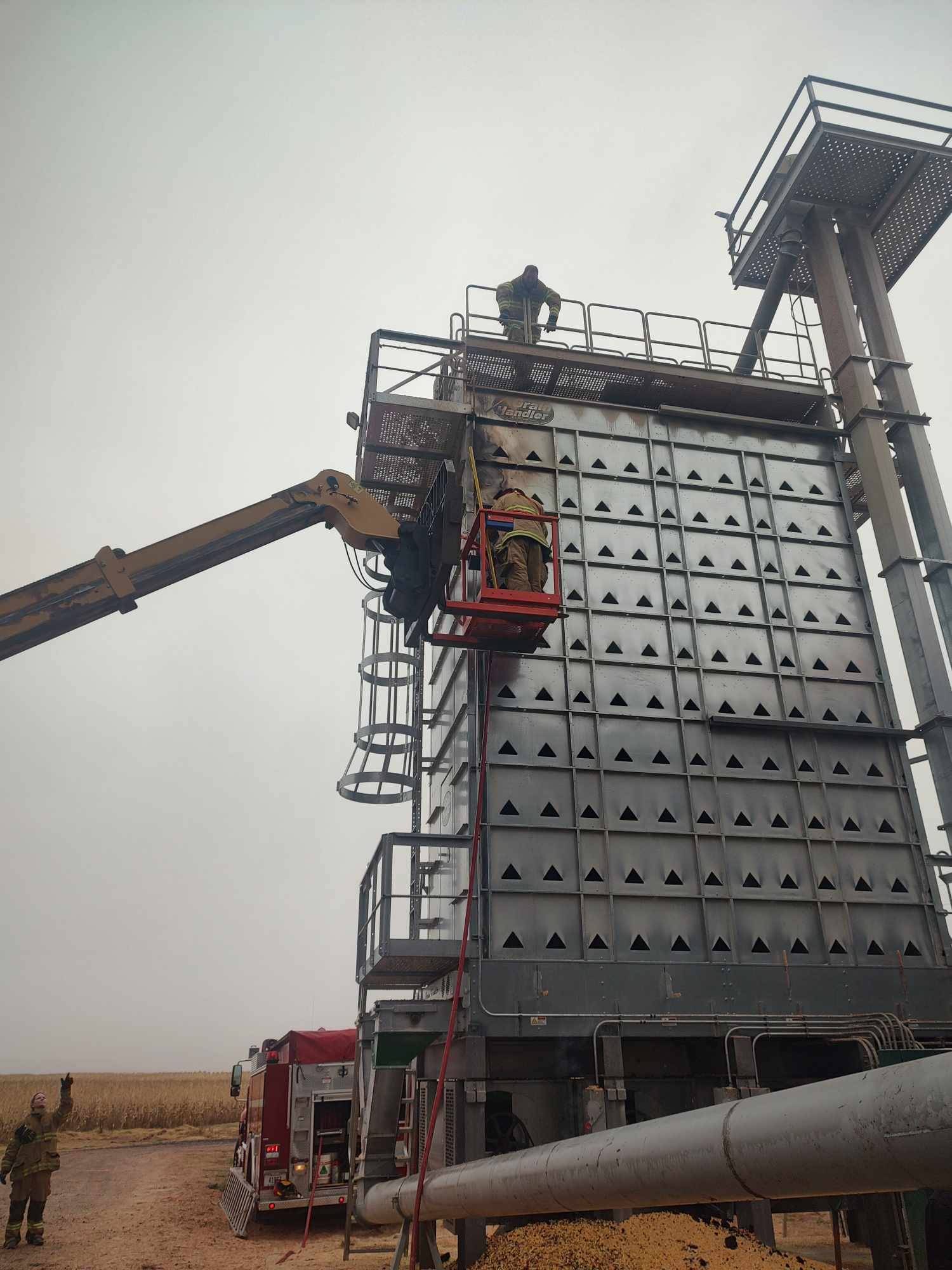 A grain bin dryer had caught on fire, according to Merna Fire Chief Ernie Johnson.