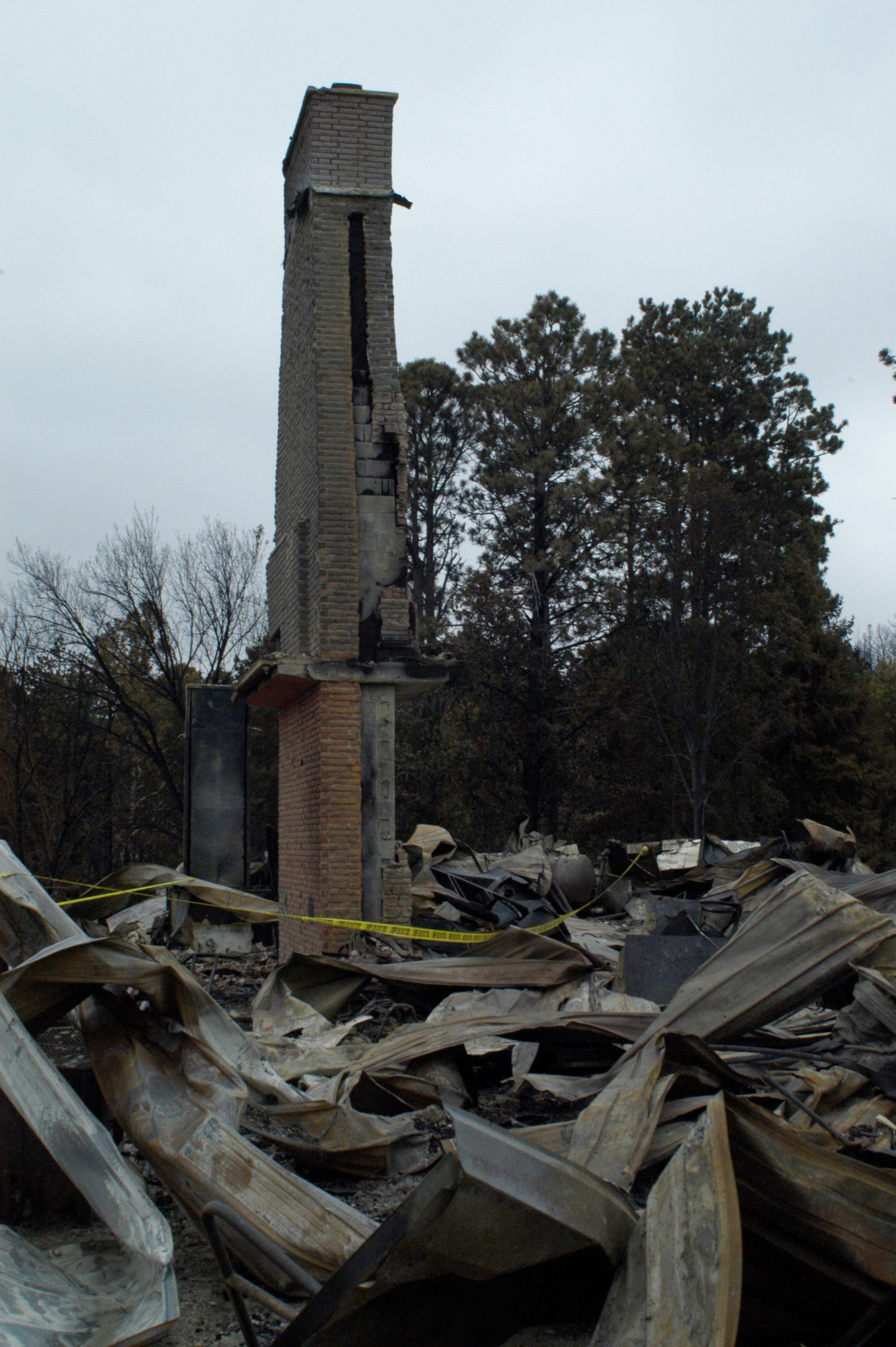 The staff house, almost inexplicably, was the sole survivor of 17 structures. Eerily, it stands entirely untouched; its windows are free of soot, clear as soap bubbles, and plastic chairs lounge on the concrete patio like a pair of old friends comfortable in silence and heat.